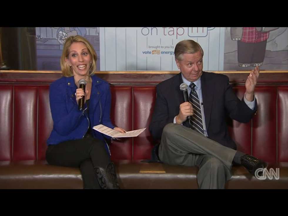 Tuesday night at CNN’s “Politics on Tap” event in Boulder, Colorado, special guest bartender Senator Lindsey Graham (R-SC) was asked old bar game question: “Date, Marry, or Make Disappear” — with the choices of Sarah Palin, Carly Fiorina, and Hillary Clinton — though as CNN’s Dana Bash admitted, she did clean up the word “date” from originally being something that “rhymes with truck.”