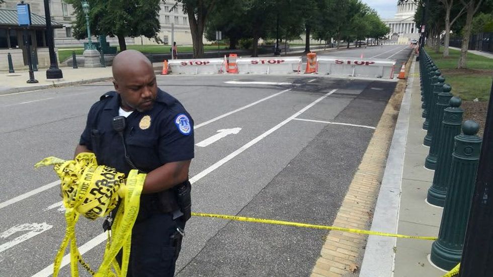 Earlier, police said "it does not appear the man was targeting any members of Congress, who are on recess, and it does not appear officers fired their weapons."