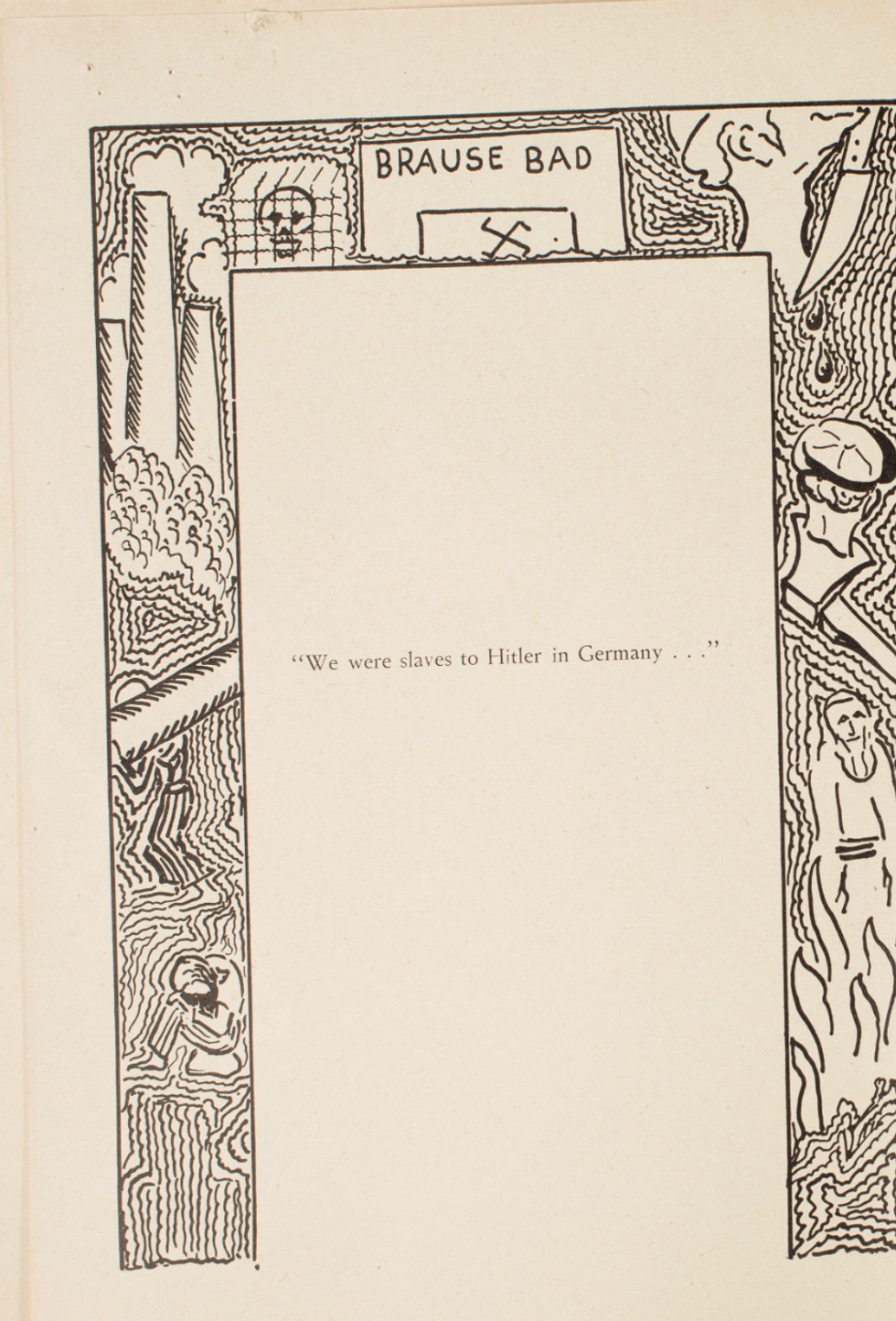 This is the first page of The Survivors Haggadah, another kind of memorial to the dead of another kind of war that was waged by the Nazis against Jews before and during World War II: