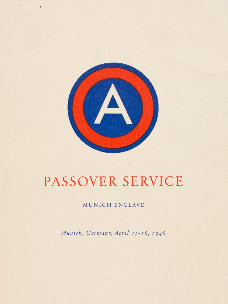 At the end of war, after several antisemitic outbursts by General George S. Patton were reported in U.S. newspapers, General Dwight D. Eisenhower relieved Patton of command of the Third Army and turned that command over to Grandpa, appointing him Military Governor of Bavaria and putting him in charge of all the displaced person camps in southern Germany. Under Patton, Jewish survivors of the Holocaust were being kept in camps in conditions not much better than they suffered in the Nazi concentration camps. Grandpa moved the Jewish survivors into housing at German army posts he seized, and arranged for a dozen Army rabbis to be sent to Bavaria to serve the survivors. Grandpa ordered that the first Passover seder in over a decade be held in Munich in April of 1946, and ordered that A Survivors Haggadah be printed by the Third Army for the occasion. This is its cover: