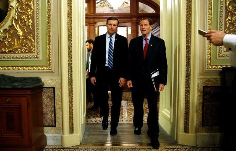 Photo: U.S. Senator Chris Murphy (D-CT) (center L) and Senator Richard Blumenthal (D-CT) (center R) depart the Senate floor directly after ending a 14-hour filibuster in the hopes of pressuring the U.S. Senate to action on gun control measures, at the U.S. Capitol in Washington, U.S. June 16, 2016. REUTERS/Jonathan Ernst
