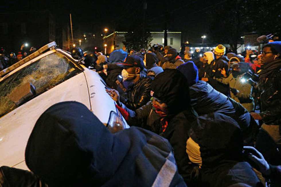 Photo: Protestors turn over a police vehicle in front of Ferguson City Hall on Tuesday, Nov. 25, 2014, in the wake of the grand jury decision not to indict officer Darren Wilson in the shooting death of Ferguson, Mo., teen Michael Brown. (Anthony Souffle/Chicago Tribune/TNS)