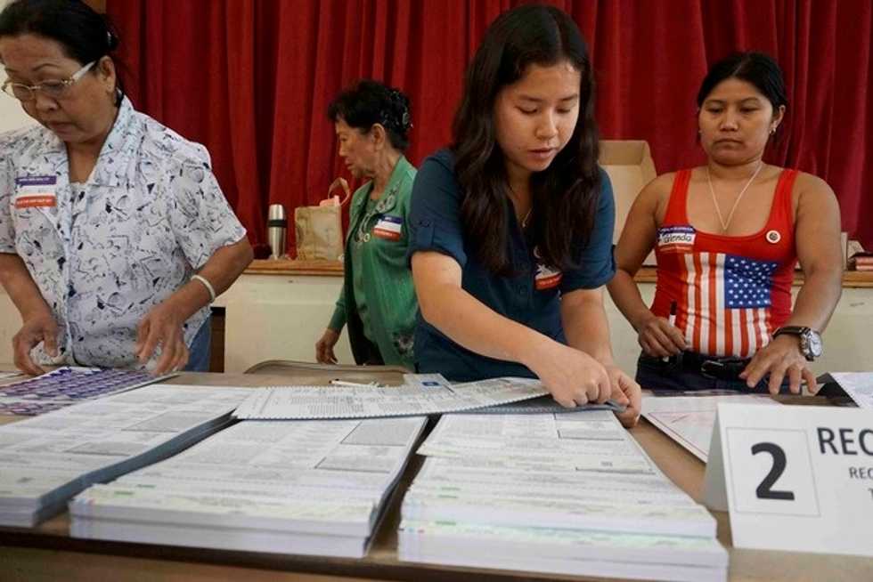 IMAGE: Poll workers distribute voting materials during the 2016 presidential election in San Diego, California, U.S November 8, 2016. REUTERS/Sandy Huffaker
