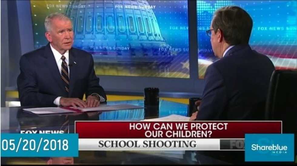 On this week’s edition of “Fox News Sunday,” North was promoting the NRA’s philosophy of essentially turning our schools into armed fortresses, when host Chris Wallace stopped him.