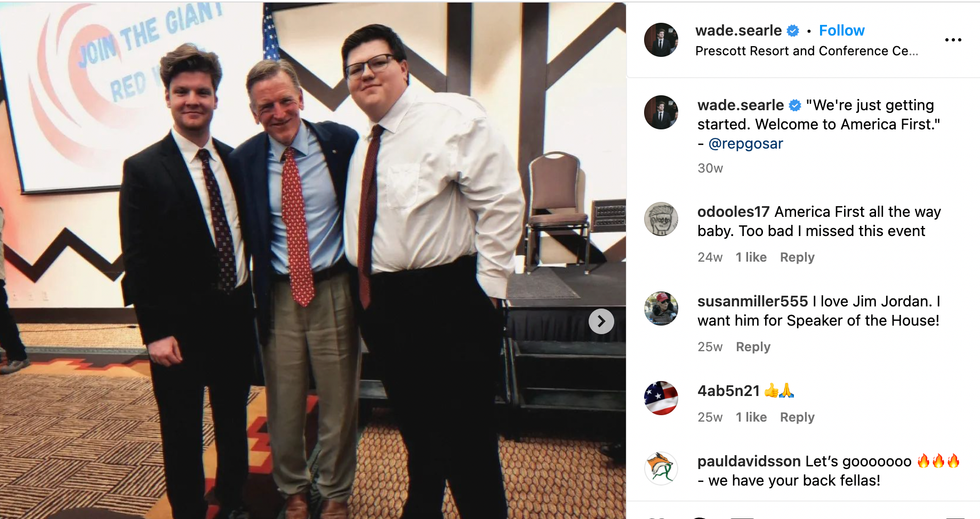 TPM also points to this photo posted to Searle’s Instagram account, of Searle, left, and Gosar, center.