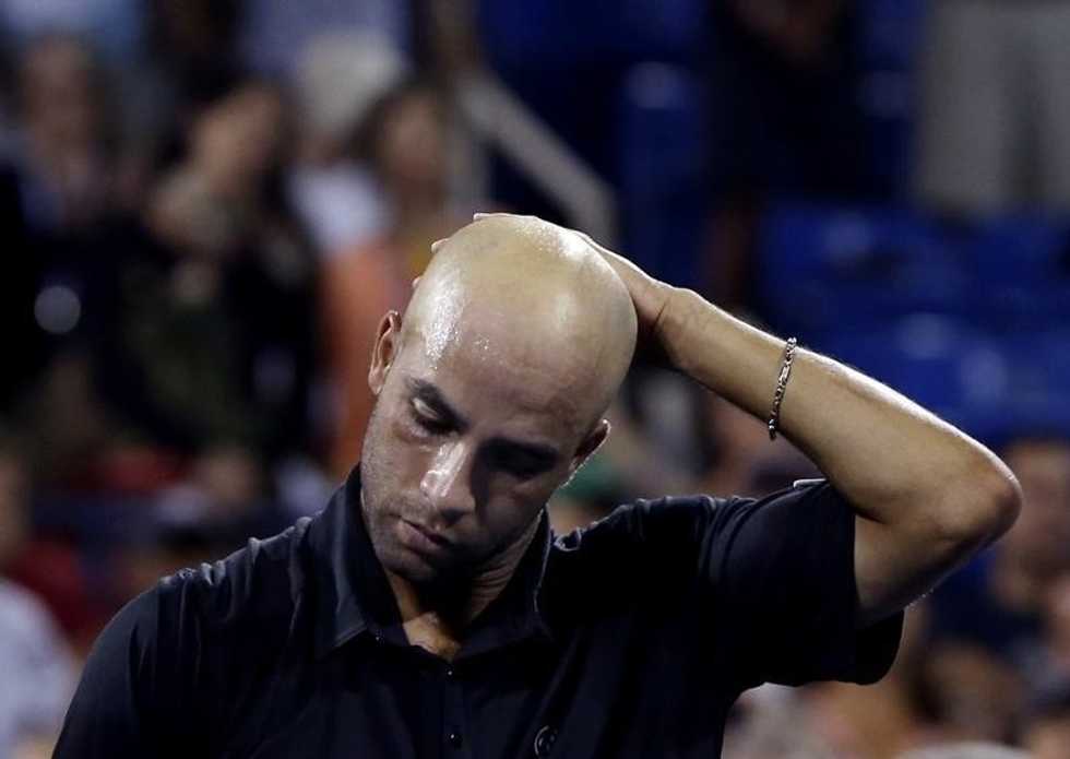 James Blake of the U.S. reacts after losing to Ivo Karlovic of Croatia at the U.S. Open tennis championships in New York in this August 28, 2013 file photo. REUTERS/Shannon Stapleton