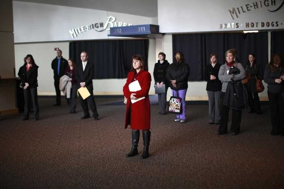 Photo: Job seekers listen to a presentation at the Colorado Hospital Association health care career fair in Denver April 9, 2013. REUTERS/Rick Wilking