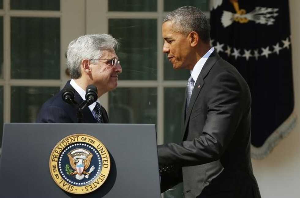 Photo: Barack Obama with Merrick Garland. REUTERS/Kevin Lamarque
