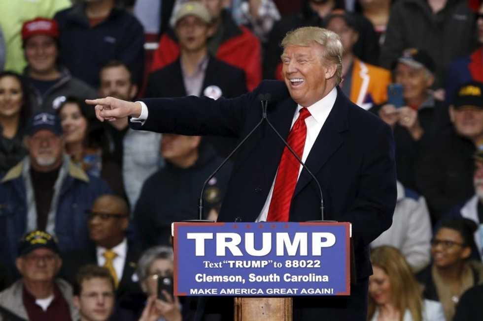 Photo: Republican U.S. presidential candidate Donald Trump takes the stage for a rally at Clemson University’s livestock arena in Pendleton, South Carolina February 10, 2016. REUTERS/Jonathan Ernst