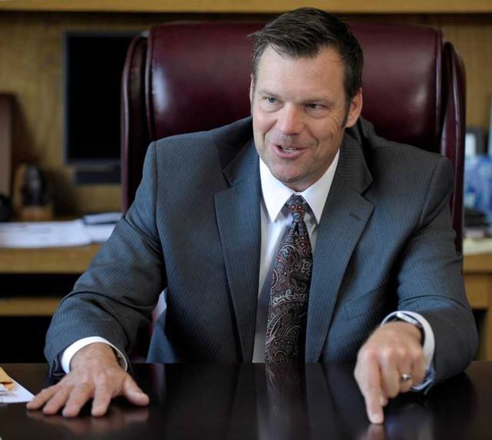 Kansas Secretary of State Kris Kobach lashed out at a group of students protesting against gun violence Friday, telling them to “stay in class” and study the Second Amendment.
