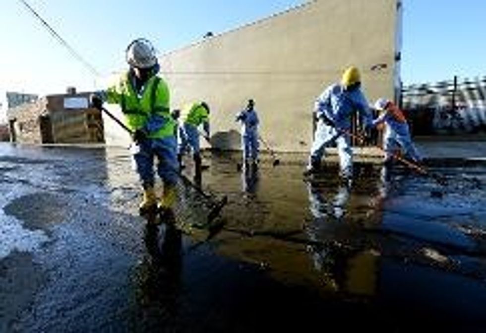 He said cleanup crews would use diaper-like sponges to sop up what oil could not be vacuumed up by the tanker trucks. After that, he said, high-pressure hoses blasting a soap solution will be used to break up the remaining oil.