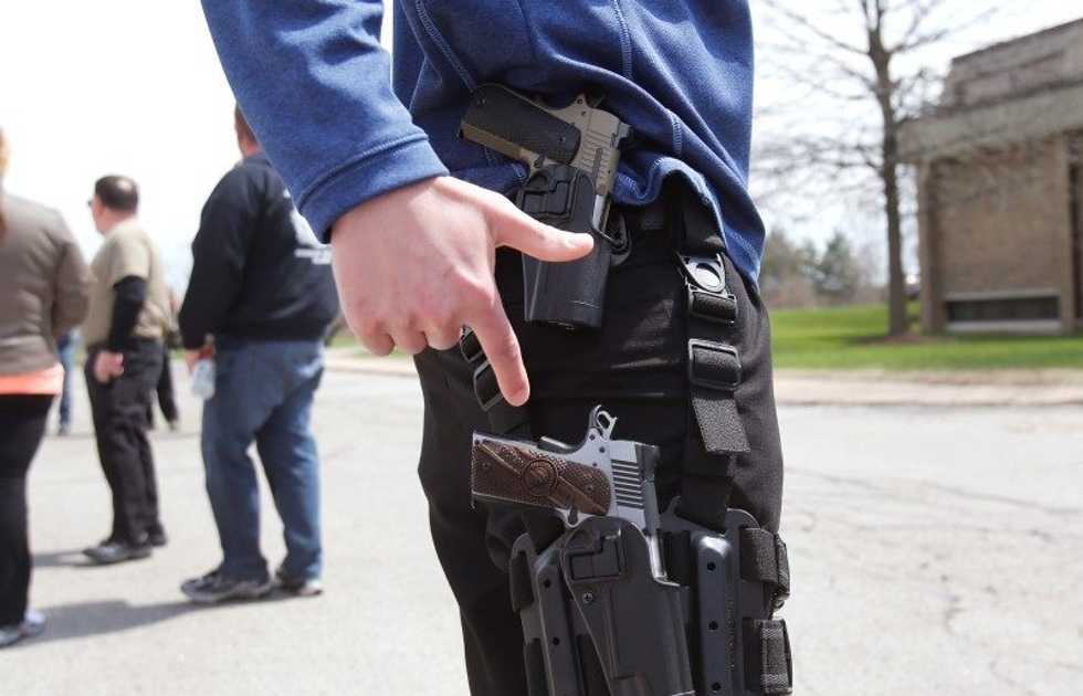 Photo: A gun rights supporter openly carries two pistols strapped to his leg during a rally in support of the Michigan Open Carry gun law in Romulus, Michigan April 27, 2014. REUTERS/Rebecca Cook