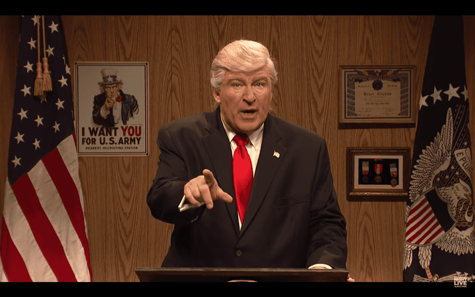 In this week’s SNL cold open, Donald Trump (Alec Baldwin, of course) shows up in Kentucky’s Boone County for a surprise visit to reassure his white working class supporters, and he’s in an unusually good mood. His Supreme Court choice has been confirmed and for the moment nobody is talking about Russia,. “What a difference 59 Tomahawk missiles can make!”