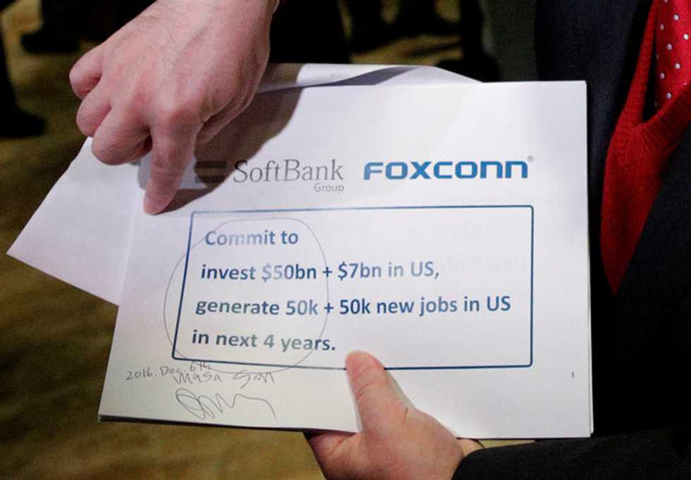“Ladies and gentlemen, this is Masa from SoftBank of Japan, and he’s just agreed to invest $50 billion in the United States and 50,000 jobs,” Trump said.