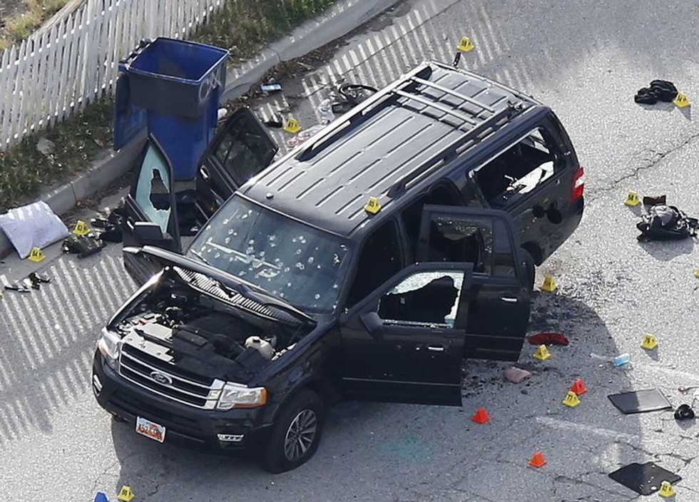 The remains of a SUV involved in the Wednesdays attack is shown in San Bernardino, California December 3, 2015. REUTERS/Mario Anzuoni