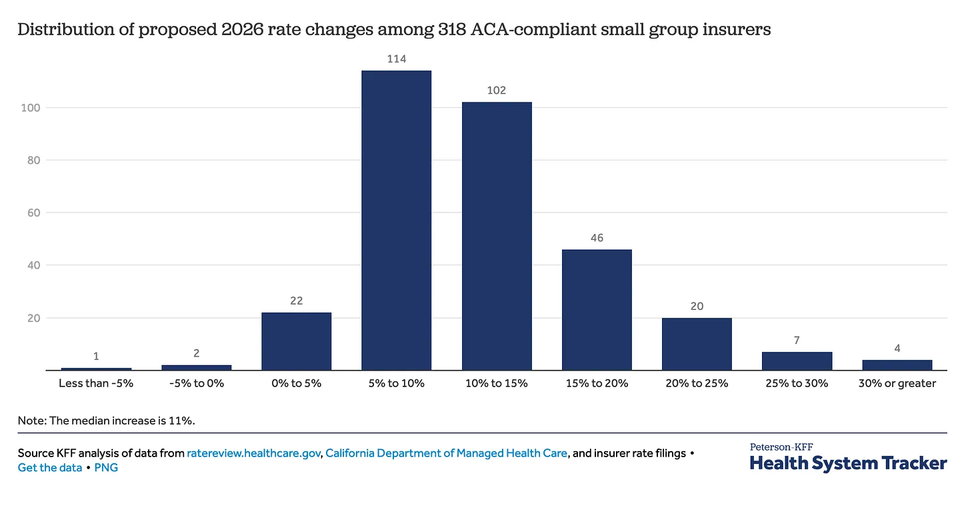 Smaller employers will be hit hardest of all. A recent issue brief from the Kaiser Family Foundation found the median proposed premium increase for 318 small group insurers who offer ACA-compliant plans was 11 percent.