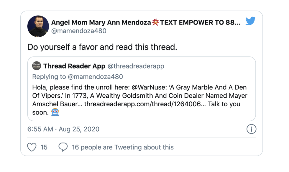Parker Malloy noted, however, that Mendoza has previously posted tweets that played into the same anti-Semitic conspiracy theories: