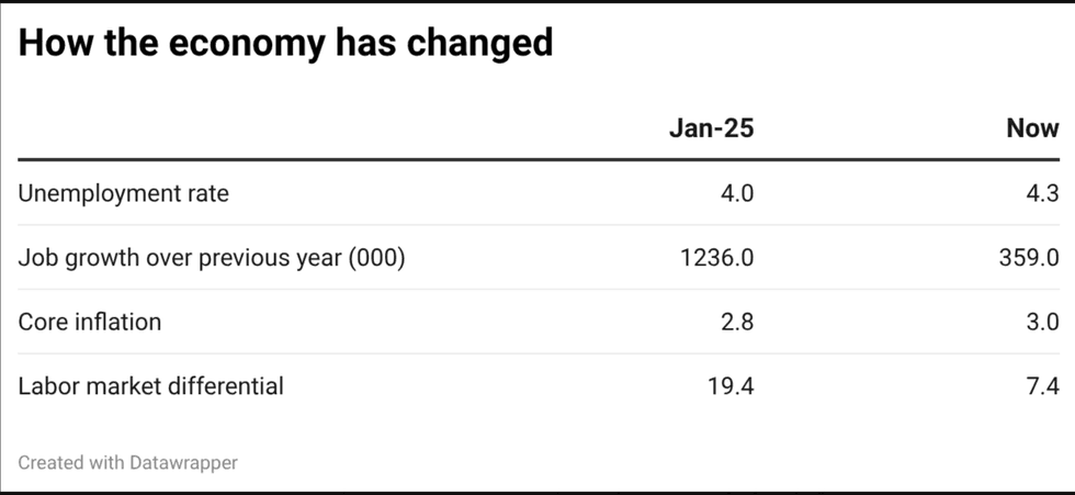 Also, there are two big disconnects. First is the gap between what Trump promised — he was going to bring grocery prices down, cut energy prices in half — and what he has actually delivered. Second is the gap between his wild boasts about how great things are and the reality of a K-shaped economy that is leaving many Americans behind.