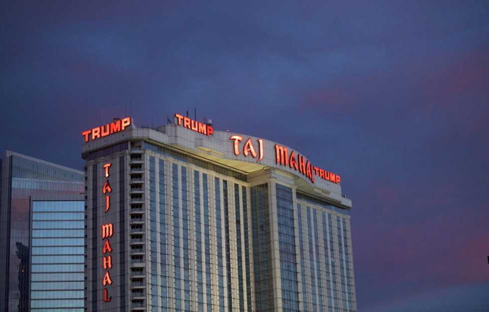 IMAGE: The Trump Taj Mahal Casino is illuminated at dusk in Atlantic City, New Jersey, in this October 24, 2014 file photo. REUTERS/Mark Makela/Files