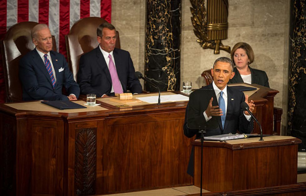 Photo: President Barack Obama delivers his State of the Union address to a joint session of Congress on Capitol Hill on Tuesday, Jan. 20, 2015, in Washington, as Vice President Joe Biden and House Speaker John Boehner of Ohio Look on. (NASA/Bill Ingalls via Flickr)
