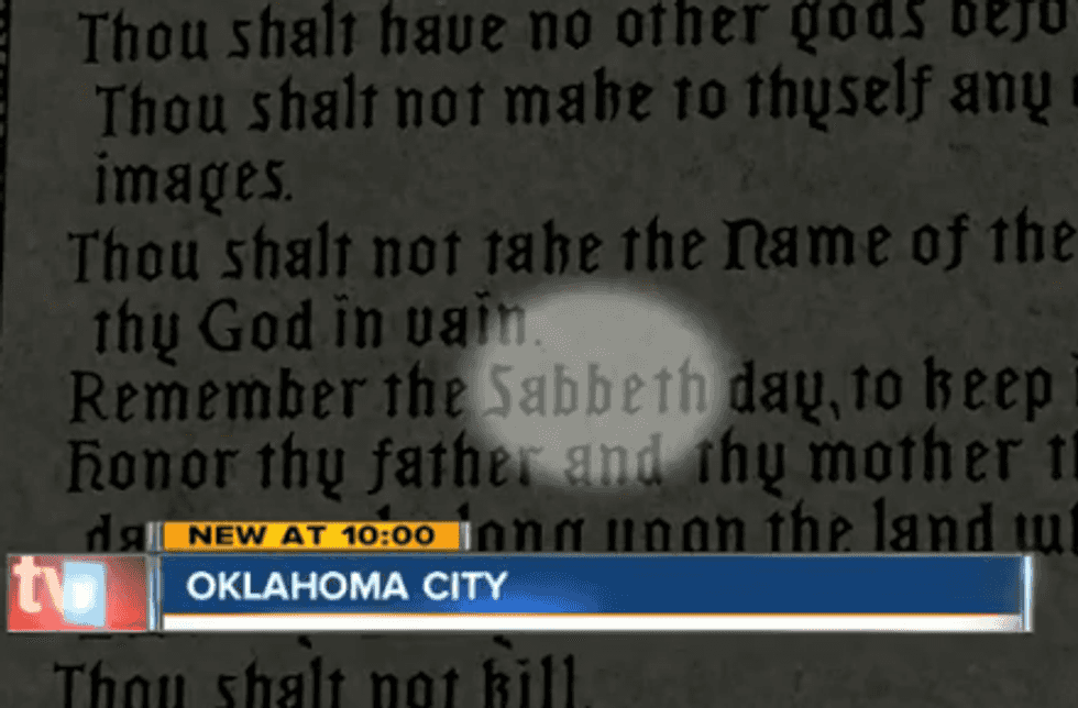 The bill that established the monument states, “The Ten Commandments found in the Bible, Exodus 20:1-17 and Deuteronomy 5:6-21, are an important component of the moral foundation of the laws and legal system of the United States of America and of the State of Oklahoma.”