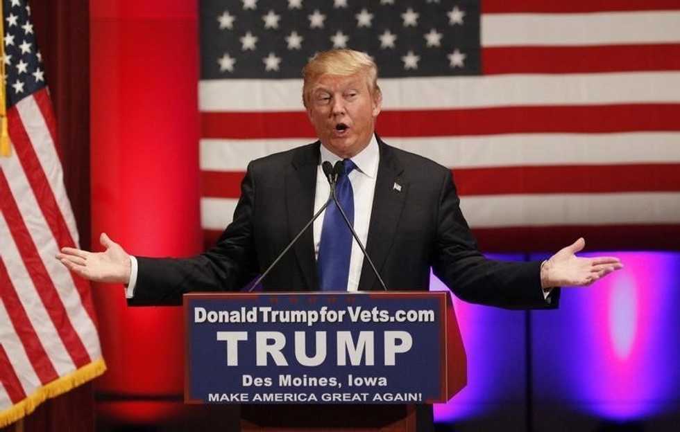 Photo: U.S. Republican presidential candidate Donald Trump speaks at a veteran’s rally in Des Moines, Iowa January 28, 2016. REUTERS/Rick Wilking