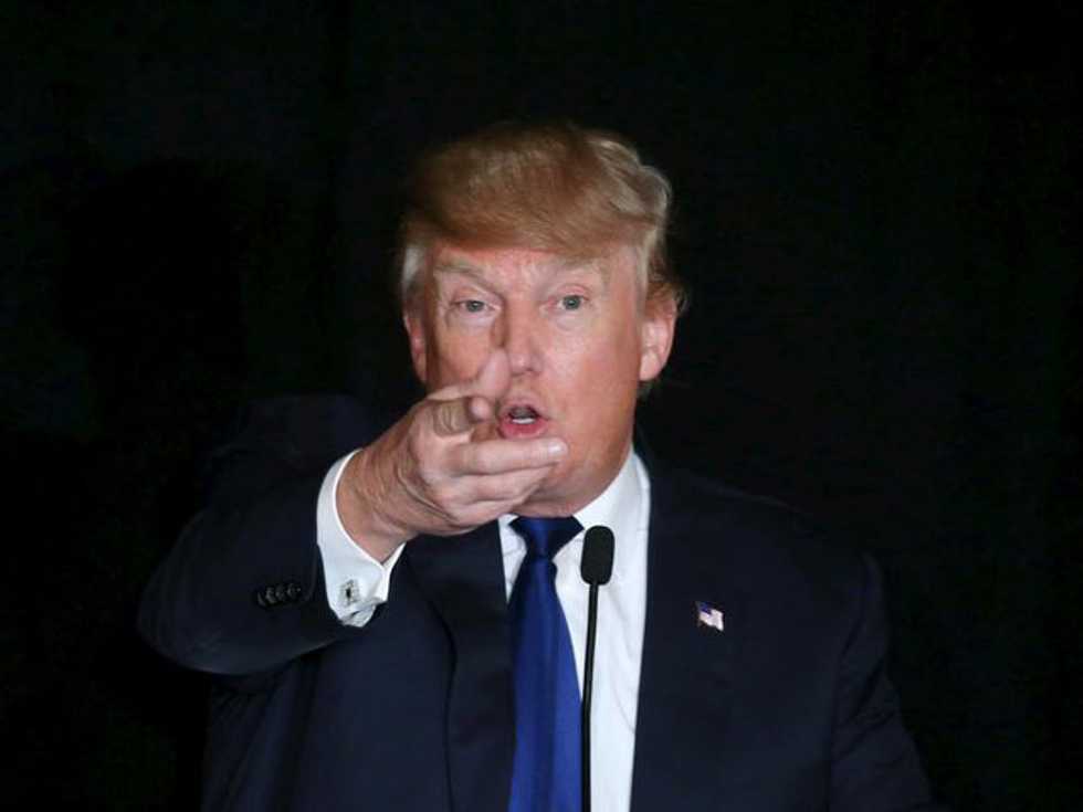 Photo: U.S. Republican presidential candidate Donald Trump gestures as he speaks at the meeting of the New England Police Benevolent Association in Portsmouth, New Hampshire December 10, 2015. REUTERS/Mary Schwalm