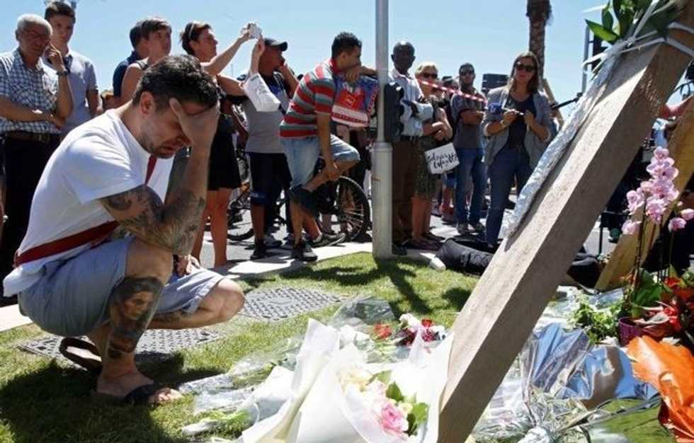 Photo: A man reacts near bouquets of flowers near the scene where a truck ran into a crowd at high speed killing scores and injuring more who were celebrating the Bastille Day national holiday, in Nice, France, July 15, 2016. REUTERS/Pascal Rossignol