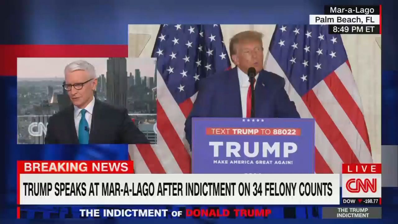 CNN went live to Mar-a-Lago at 8:22 p.m. ET, followed by a straight feed for several minutes of Trump taking the stage to the cheers of the crowd, before he began his speech at 8:25 p.m. The network then carried Trump’s rambling speech directly for 23 minutes and 21 seconds of its 24 minute and 55 second total runtime, as he insulted the judge in the New York case as well as his family, continued pushing conspiracy theories claiming that the 2020 election was stolen from him, and personally attacked the prosecutors investigating him or his businesses in multiple other cases, accusing Black prosecutors of being “racist” and “racist in reverse.”