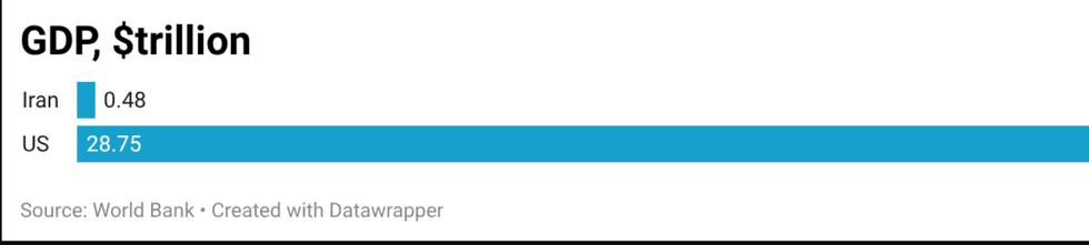 So the world’s greatest military power went to war with a poor, medievalist theocracy. It was an incredibly uneven match. Here’s are the GDPs of Iran and the United States in 2024:
