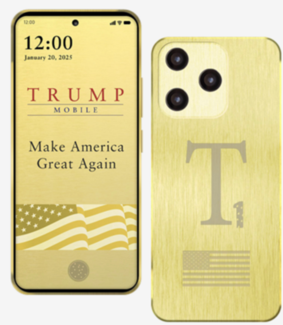 The phone itself is also in a state of flux. The original offering looked like a gold-plated iPhone, but when Trump Mobile started taking preorders in August, it changed to looked like a Samsung Galaxy S25 Ultra, photoshopped with the T1 logo and an American flag. The phone also now appears to be in a Spigen case—because they literally forgot to remove the Spigen logo.