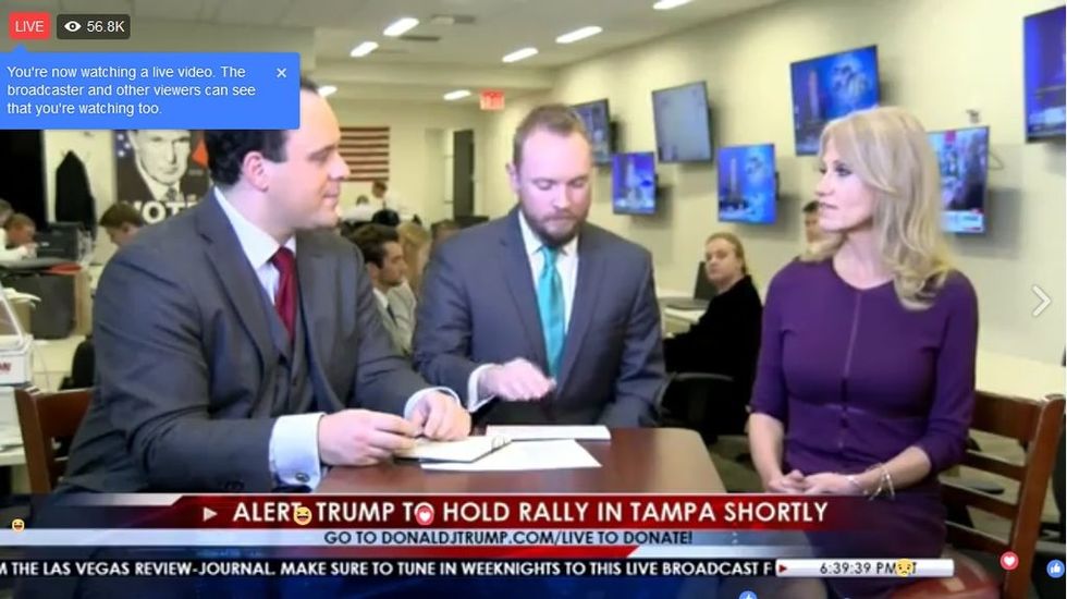 Tonight, the Trump campaign is kicking off a show that will air on the candidate’s Facebook page every night at 6:30pm ET via Facebook Live from the campaign war room at Trump Tower. The show will be hosted by Boris Epshteyn, a senior adviser to the campaign, Tomi Lahren, a conservative commentator for Glen Beck’s TheBlaze, and Cliff Sims, another Trump adviser. In tonight’s inaugural episode they will interview Trump campaign manager KellyAnne Conway and adviser Jason Miller.
