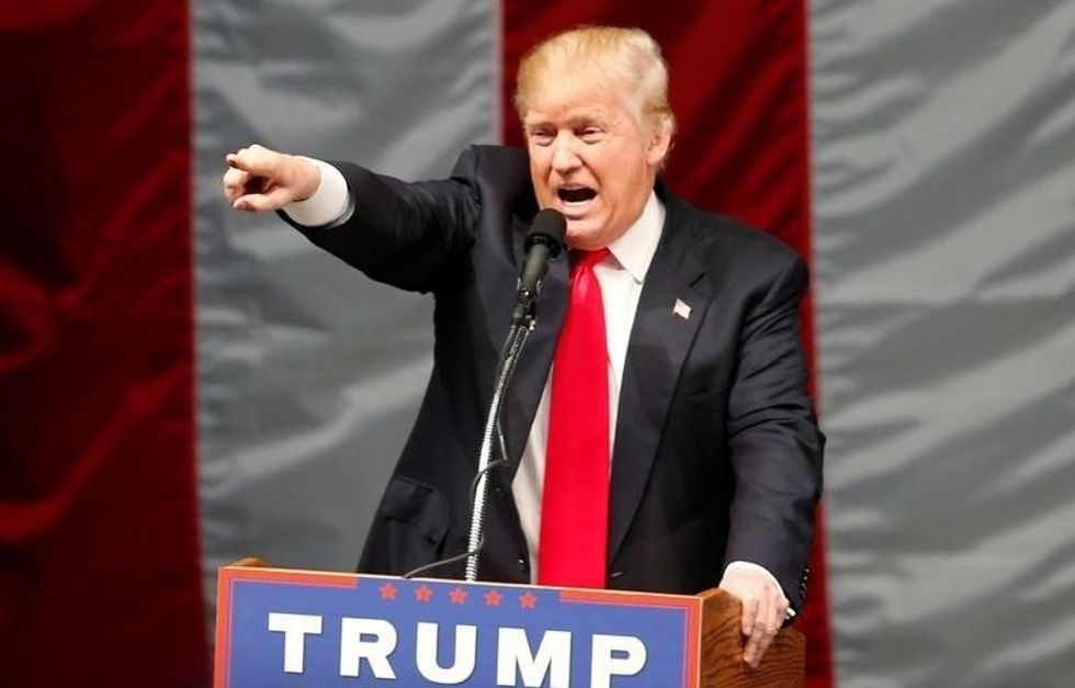 Photo: Republican U.S. presidential candidate Donald Trump speaks at a campaign rally in Costa Mesa, California, U.S., April 28, 2016. REUTERS/Lucy Nicholson