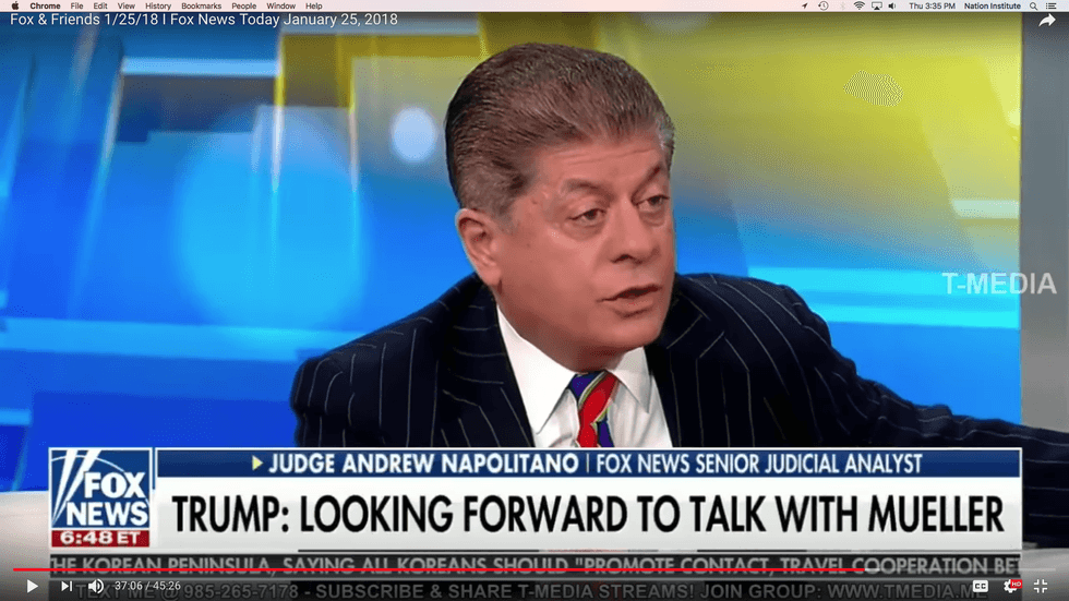 On Thursday morning, Judge Andrew Napolitano told the show’s co-hosts that if Trump is subpoenaed by the Mueller grand jury, he should plead the Fifth, even though it would be “politically catastrophic.”
