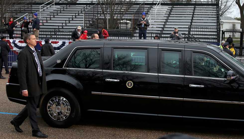 IMAGE: Secret Service agents walk alongside of President Donald Trump’s limousine as it passes empty viewing bleachers during the inaugural parade that followed his swearing in at the Capitol in Washington, January 20, 2017. REUTERS/Carlos Barria