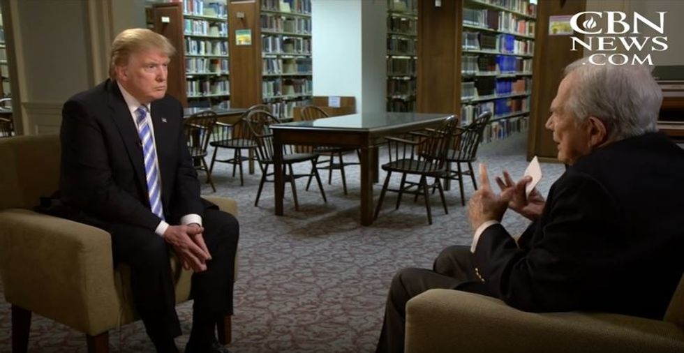 After two months of cozy Fox News interviews, President Donald Trump finally plans to sit down with another network’s host tomorrow. But don’t expect the interview to shed much light on the numerous scandals currently drowning the Trump administration. The president will be questioned by the Christian Broadcasting Network’s Pat Robertson, who has said that Trump’s critics are defying God’s will and serving Satan.
