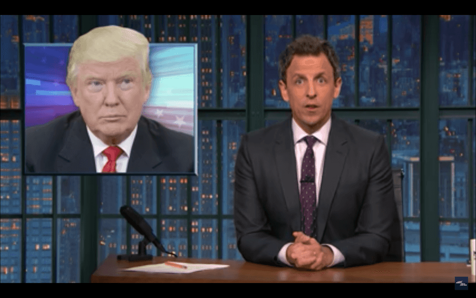 On Late Night, Seth Meyers takes “a closer look” at the foreign deals that Donald Trump and his children have done in dozens of countries — and why the Trump Organization’s continuing pursuit of profits abroad is not just tacky but may violate the Constitution. Evidently the president-elect believes he can disregard the ethical obligations that have bound his predecessors. But if he flouts the Constitution, he isn’t invulnerable to impeachment.