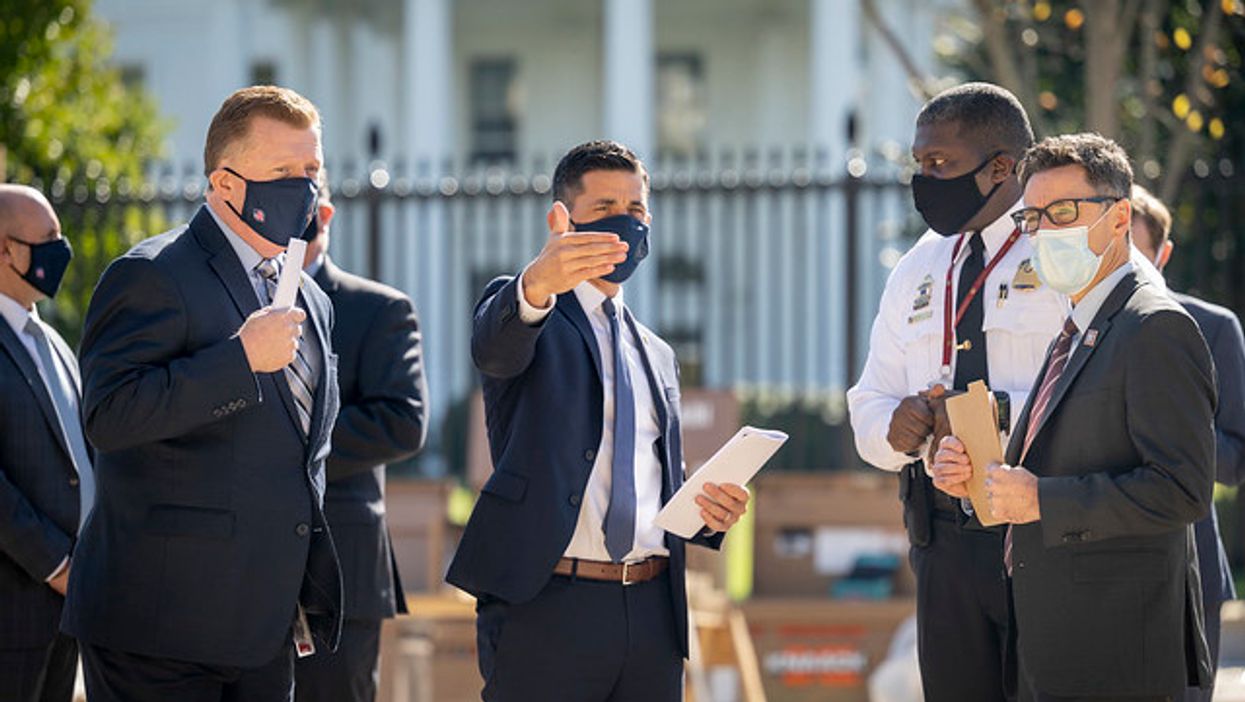 Acting Homeland Security Secretary Chad Wolf with members of the US Secret Service