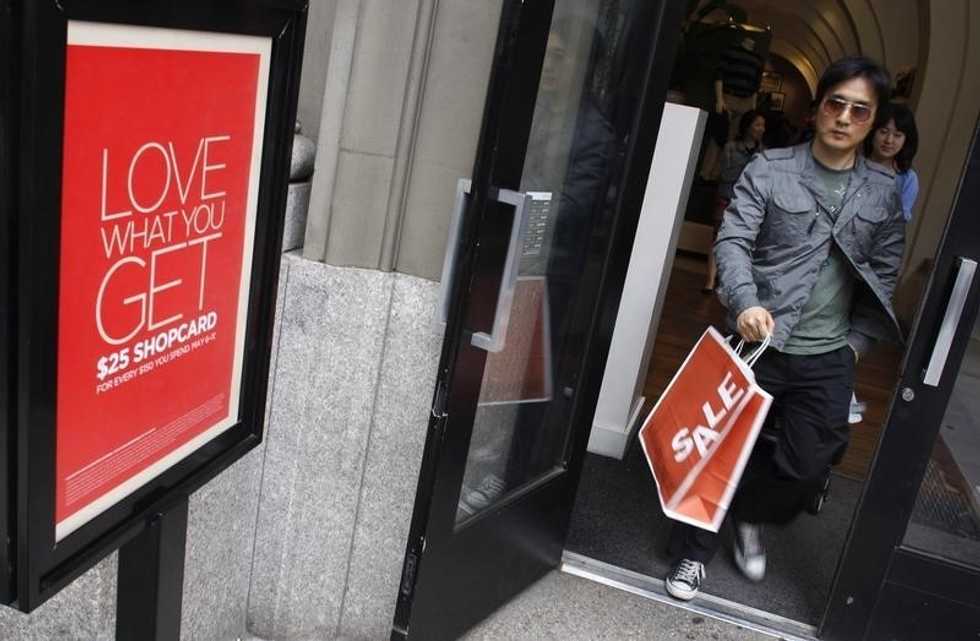 Photo: A man walks out of a Banana Republic store with his purchase along 5th Avenue in New York City, May 11, 2008. REUTERS/Joshua Lott