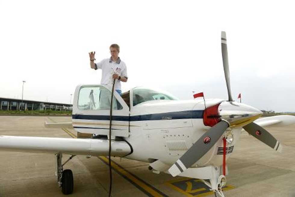 Matt Guthmiller, a student at the Massachusetts Institute of Technology (MIT), smiled and flashed a thumbs-up after he landed his single-engined Beechcraft A36 Bonanza aircraft in the city of Nagpur in western Maharashtra state early Thursday.