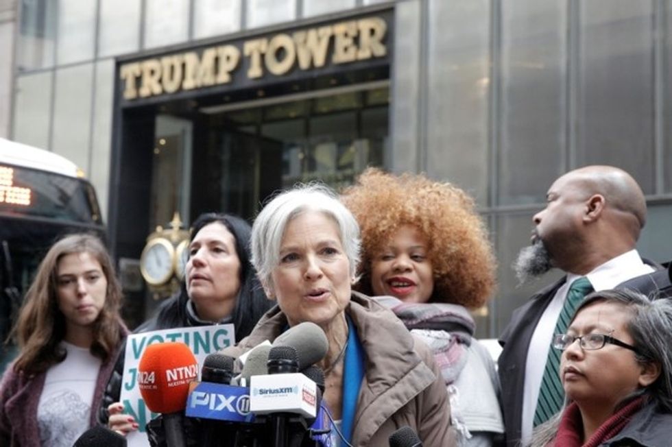 IMAGE: Green Party presidential nominee Jill Stein speaks during a news conference outside Trump Tower in Manhattan, New York City, U.S. December 5, 2016. REUTERS/Brendan McDermid