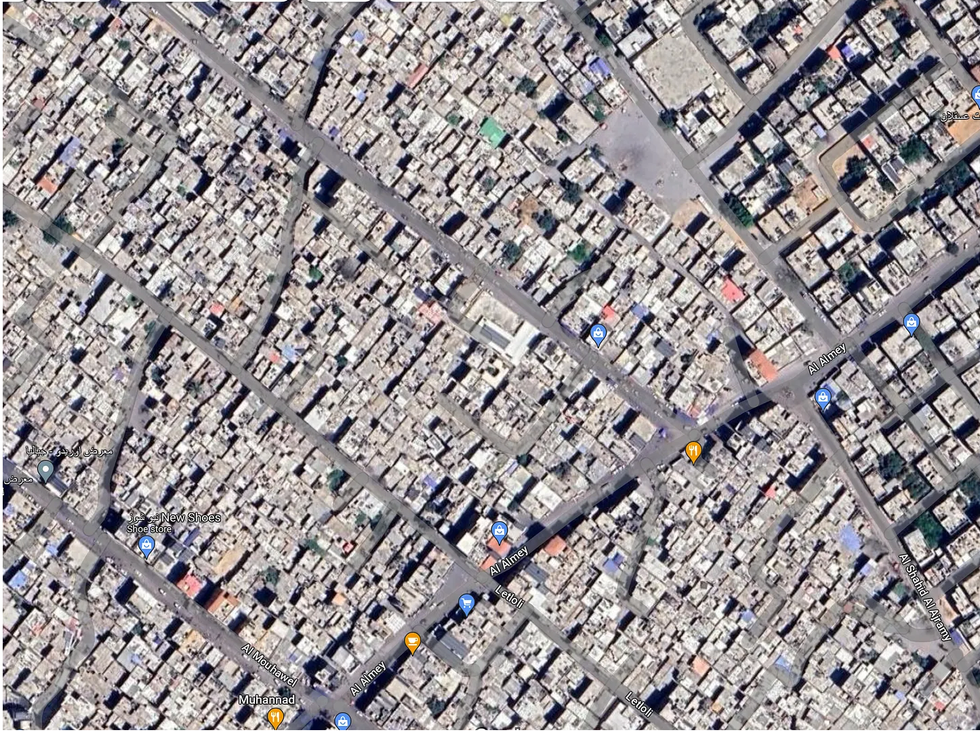Here is a satellite photo of the area in Jabalia before Israel’s airstrike that targeted Ibrahim Biari on Tuesday night. Take special notice of the white L-shaped building with a gray rectangle on top of it at the right of the photo: