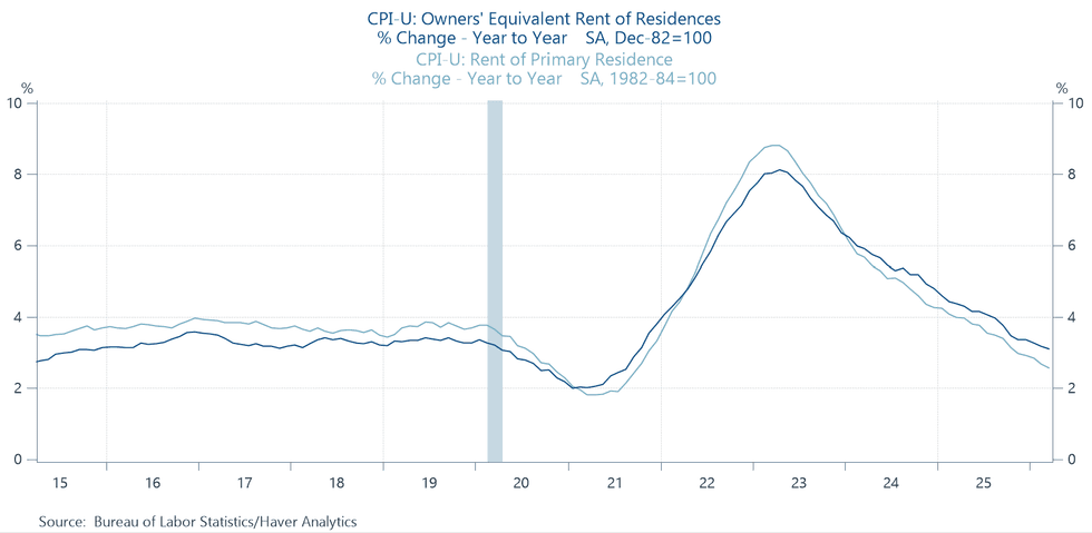—Housing inflation continues to ease, back to its pre-pandemic levels, which, given its heavy weight in the index, is helping to keep overall inflation—aside from the war shock—in check.