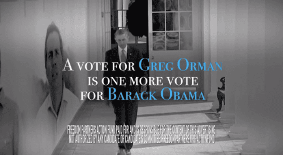 The ad was created by Freedom Partners Action Fund, a SuperPAC linked to Freedom Partners, a 501(c)6 nonprofit organization. As The Huffington Post has reported, Freedom Partners serves as a “central bank” for the Koch brothers’ political activity, and distributed $41.7 million to various Koch-linked organizations in 2013.