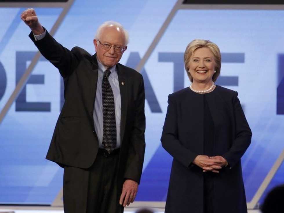 Photo: Democratic U.S. presidential candidates Senator Bernie Sanders and Hillary Clinton pose before the start of the Univision News and Washington Post Democratic U.S. presidential candidates debate in Kendall, Florida March 9, 2016. REUTERS/Carlo Allegri