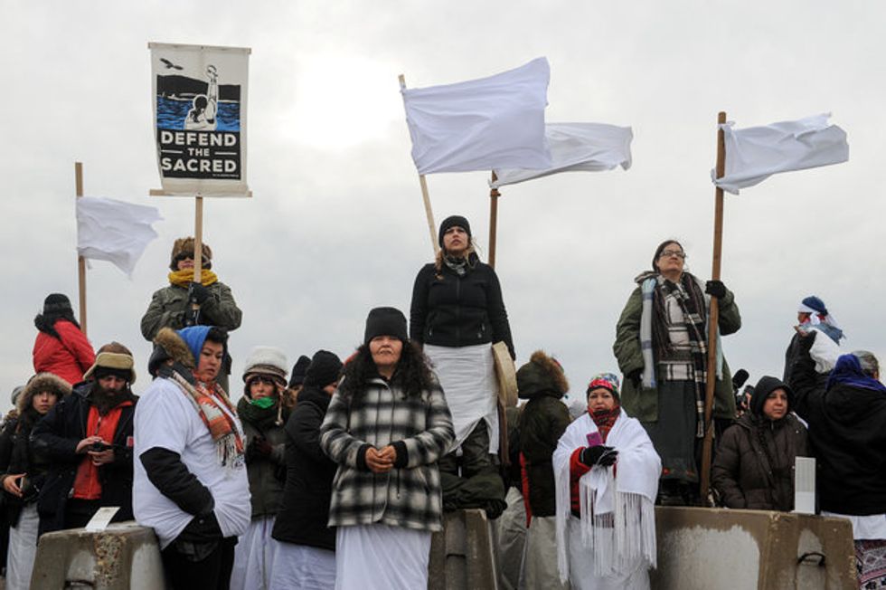 IMAGE: Women hold a demonstration on Backwater Bridge during a protest against plans to pass the Dakota Access pipeline near the Standing Rock Indian Reservation, near Cannon Ball, North Dakota, U.S. November 27, 2016. REUTERS/Stephanie Keith