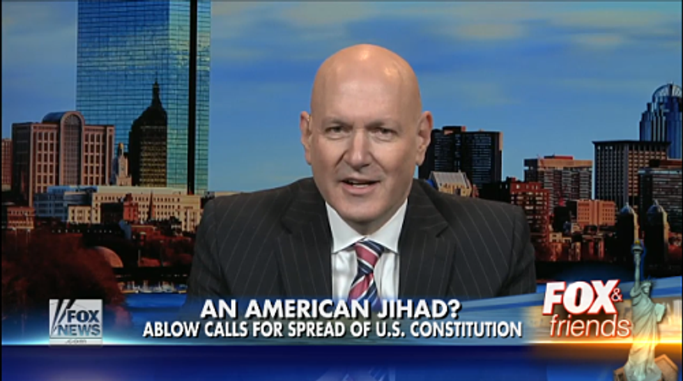 Ablow’s jihadist plan for global conquest was odd enough to catch the attention of co-workers at Fox & Friends, who invited him on the show to defend his unhinged plan.