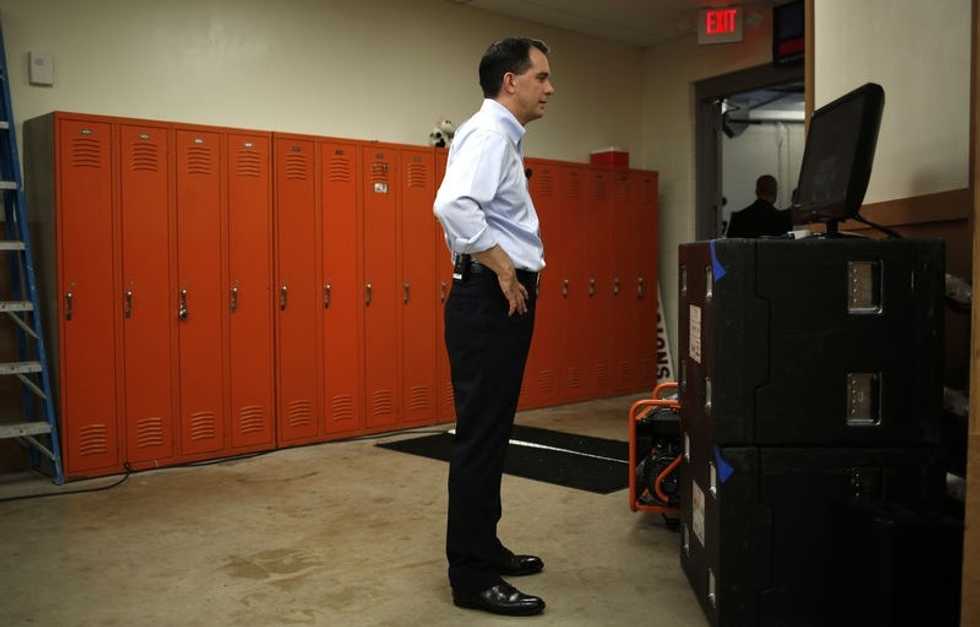 Photo: Scott Walker watches his wife Tonette address the crowd as he stands backstage looking at a TV monitor before going out to formally announce his campaign for the 2016 Republican presidential nomination during a kickoff rally in Waukesha, Wisconsin, July 13, 2015. REUTERS/Jim Young