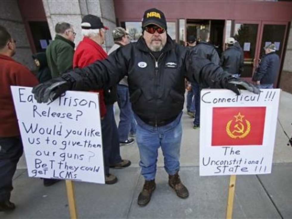 Meanwhile, on a bipartisan basis, the Connecticut Legislature was moving to pass a broad background check bill that would also regulate the private sales of shotguns and rifles, ban high-capacity magazines and expand the list of prohibited assault weapons.