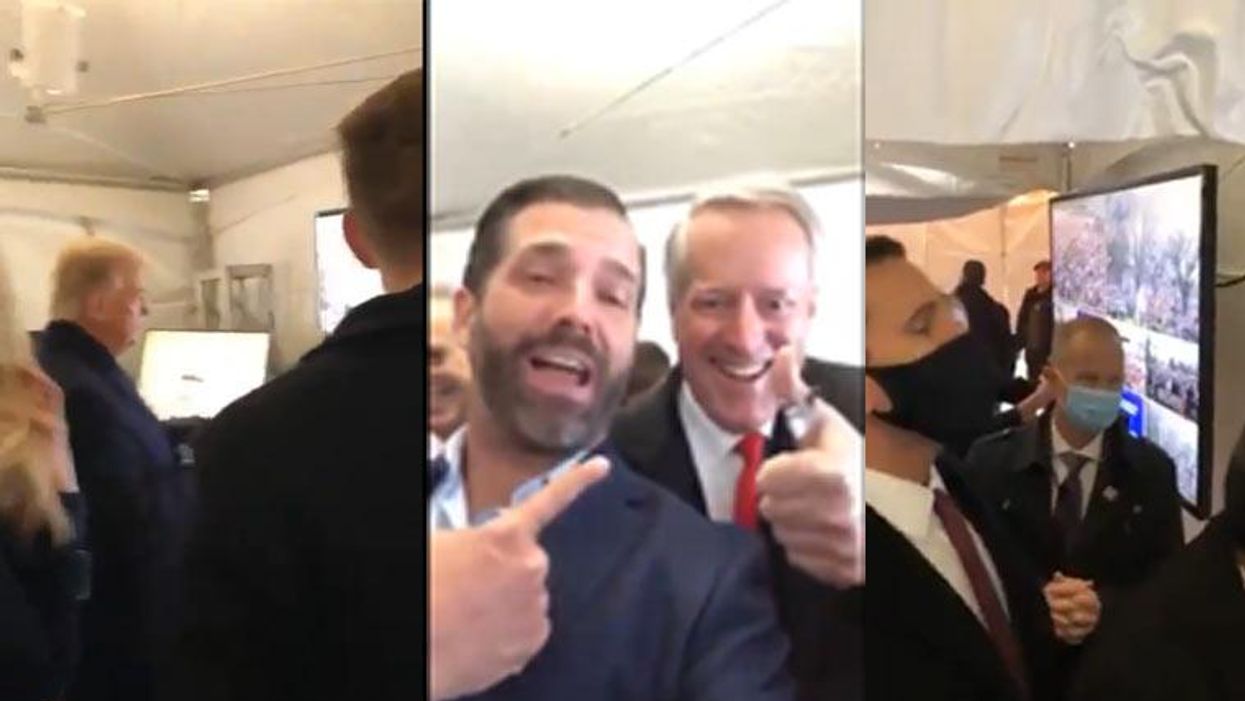 Donald Trump and Donald Trump Jr. in tent at Ellipse rally on January 6, 2021